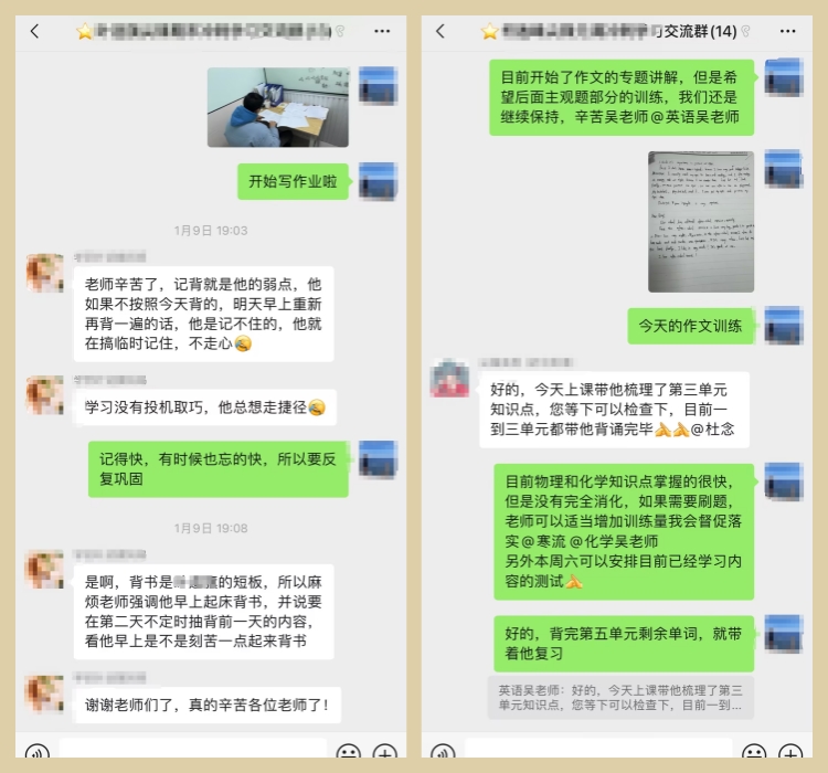 感谢老师们的辛苦教学,班主任们总是牺牲午休和下班时间给学员抽查背诵检查作业学员有时候会有点不自信也进行了鼓励。班主任和老师们的完美配合给了学员极大的帮助,即使每天作业写到很晚也不退缩以前不会的题也慢慢会了。刚开始进步不是很明显,最后开始慢慢有大的进步,最终考入理想学校!再次感谢!